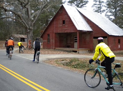 The ride begins and ends in the little town of Waverly, VA. Take the 8:10 or 8:30 AM ferry, go through the town of Surry, take a right on Rt. 10 and a left on Rt. 40 which takes you to Waverly. Park behind the closed restaurant at the intersection of Rt. 40 and Rt. 460, on the left. After the ride, many from the group enjoy lunch together at Pinos’ restaurant in Waverly.